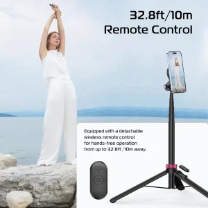 Detachable Wireless Remote Control: This multi-functional selfie stick comes with a detachable remote shutter, which is convenient to carry and easy to use. Utilizing the most advanced technology, it can trigger your phone’s camera from a distance of up to 33 feet (10 meters), allowing professional-level selfies without assistance. Supports wireless connection of iOS/Android devices, no app required.