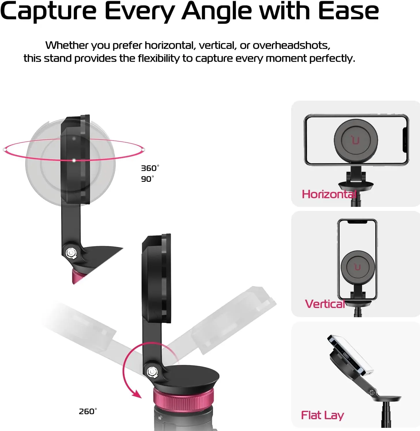 Compatible with MagSafe: MT-84 phone tripod, not only for selfies, but also for photography while freeing your hands. You can quickly attach your phone to the tripod with just one hand operation, no more steps required.