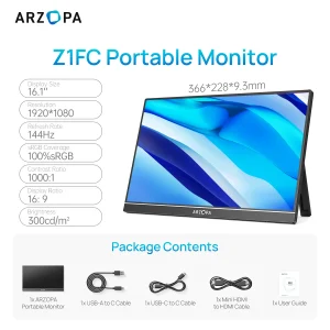 【Multi-Port Compatibility】:This portable monitor is equipped with dual USB-C ports on both sides and a mini HDMI port, compatible with a wide range of devices: Mac, laptops, desktops, Switch, PS, Xbox, phones (with Type-C port; for iPhone: a Lightning to HDMI adapter is required), etc.